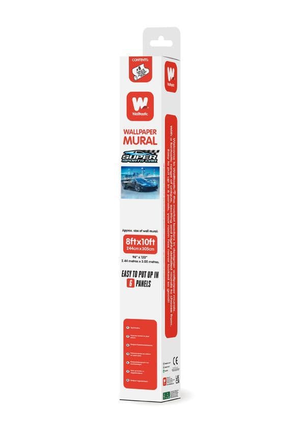 Revamp your space with this dynamic Super Sports Car Wall Mural by Walltastic. Measuring 8ft tall by 10ft wide (243.84cm x 304.80cm), this mural is divided into 6 convenient panels for easy application and adaptability to your desired coverage area. Packaged in a gift box and rolled like wallpaper, it’s a sleek and stylish addition to any room.